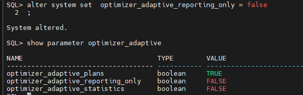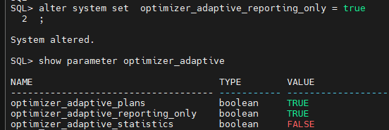 SQL튜닝에 대한 전문가가 많지 않은 데이터 베이스 환경에서는 OPTIMIZER_ADAPTIVE_REPORTING_ONLY 를 True 로 변경하는게 바람직합니다.