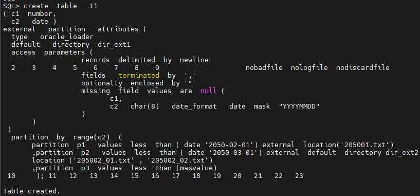 ,partition p2 values less than ( date '2050-03-01') external default directory dir_ext2