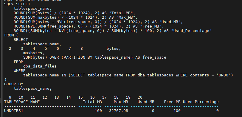 1. undo table space의 사용량을 조회하는 쿼리문을 작성