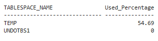 ROUND((SUM(bytes - NVL(free_space, 0)) / SUM(bytes) * 100), 2) AS "Used_Percentage"